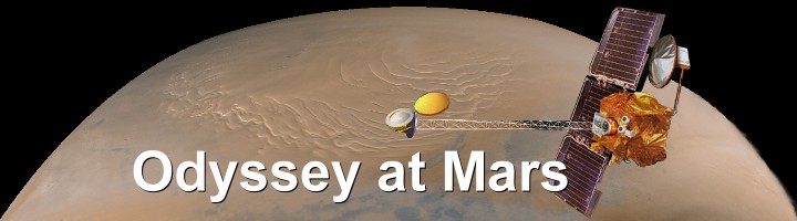 Bright deposits of water ice alternate with bands of dark sand, descending from the left into a 610 metre deep canyon. The layers accumulated over millions of years, and will help scientists to piece together the history of climate change on Mars.