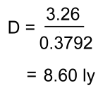 300 million kilometres.The parallax angle 'p' to a nearby star can be measured as the star seems to move against the background of much more distant stars. Due to the vast distances to even the nearest stars, however, the perceived shift is barely noticeable, and measuring it is extremely difficult. The first known astronomical measurement using parallax didn't involve a star but the moon. The ancient Greek astronomer Hipparchus in 170 BC reportedly used observations of a solar eclipse from two different locations to calculate the lunar distance. In 1672, Italian astronomer Cassini and his colleague Jean Richer made simultaneous observations of Mars, with Cassini in Paris and Richer in French Guiana. Cassini then used those measurements to calculate the parallax, determining Mars' distance from Earth. The first person to succeed at measuring the distance to a star using parallax was the German astronomer Friedrich Bessel in 1838. Based on his observations, he calculated that the star 61 Cygni must be about 10 light years away from Earth. This was the beginning of the long process of actually building a three-dimensional map of the universe. Let's look at an actual calculation by using parallax to find the distance to the star Sirius. The distance D is determined using the formula: ![]() where: D = distance in light years P is half the parallax angle p For Sirius, that angle P is very small: 0.3792 arc-seconds (an arc-second is 1/3600th of a degree) Here's the calculation: