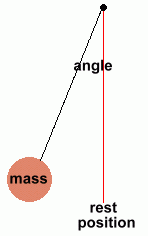 ![]() ![]() If you pull the mass away from its rest position, so that the string is at an angle, and then let go, the mass will begin to swing back and forth. The length of time it takes the mass to swing all the way over and back, once, is called the period of the pendulum. All three experiments will examine things we can do to the pendulum that will change the period. Here are the three questions we are asking: 1. Does the amount of mass on the end of the string affect the period? In these experiments, the dependent variable will always be the time for one full swing, or the period. The three tested independent variables will be the mass, the angle, and the length of string. The controlled variables will be the attachment point of the string, the string itself, the method used to time the pendulum, and the variales we are not currently testing. These will remain the same for each test, so that we know they won't affect the results. The experiments are easy to do, and don't require any special equipment. We did them ourselves using some string, a few large nuts, a pen, a protractor, and a watch, and got good results for all three tests in about 20 minutes. Here'a list of what you'll need for each group doing the experiment: - 3 or 4 weights, all the same - a pen and tape, to attach the pendulum to a shelf - a watch that counts seconds - a protractor - pencil and paper to record the results It's also easier if you have several people doing the experiments, so that one person is free to time the swings. When you're ready, here are the three experiments. They are set up such that the answers are not apparent, but there are links to descriptions of what should happen. There is also a page explaining the pendulum equation, for Science 10 students.