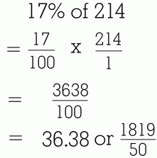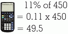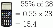 One drawback of this quick method is that you will need to memorize some conversions. But your teacher will expect you to know them anyway, so that's nothing to worry about. The other drawback is that the quick method won't work for percents for which you don't know the fraction, or for which the fraction isn't a simple one. It also won't work if the calculation is too difficult to do in your head. But watch out for special cases where you can reverse the quetion. For example, you probably can't do 80% of 50 in your head. But the answer will be the same if you reverse it: try 50% of 80. It's obviously 40. Watch out for questions where this trick will work! However, if you were asked to find 29% of 123.9, the quick method isn't very useful. You're unlikely to be able to do twenty-nine hundredths of 123.9 mentally. For problems like this, which are the kind you're most likely to encounter in real life, we need a new method. Method 2: Using Decimals and a Calculator: ![]() This method requires that you either know the decimal value for the percent, or can find it. Fortunately it is very easy to change a percent to a decimal. Since a percent is really just a fraction over one hundred, you will really be dividing by 100, which means you just need to move the decimal point two places to the left. In order to do a question like this: you must convert 28% to 0.28 by moving the decimal back two places. Then you use a calculator, remembering that 'of' means that you multiply: Here are some more examples. Remember that you can always use the calculator on your phone!