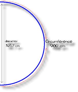 Divide this really huge circle's circumference by its diameter. When you do the calculation: 960 divided by 305.7 ...the result yet again is ... the magic number 3.14, or PI! |