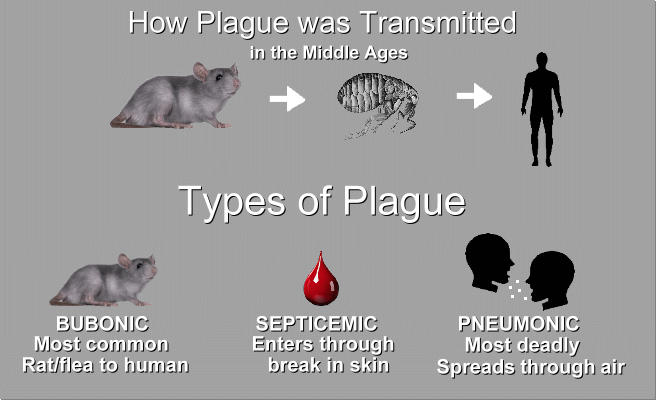 Plague is a zoonotic disease, which means you can get it from animals and they can get it from you. This disease usually spreads through bites from fleas that previously bit an infected animal. Today we still use the word “plague” to mean illness caused by Yersinia pestis. Usually, we also call it by the specific type of plague it is — bubonic, septicemic or pneumonic, the three types of plague.
