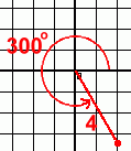 Here's a point shown using polar coordinates. It would be labelled (4, 300°)