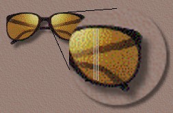 In the picture of the polarizing sunglasses at the left, you can see an expanded view of one of the lenses. Although not drawn to scale (you need a microscope to see the scratches), this will give you an idea of how they work. Only light vibrating up and down can easily get through the scratches. Light vibrating in other directions has a hard time getting through. In particular, horizontally vibrating waves will be stopped completely. Since they are the cause of glare, polarizing sunglasses will stop the glare waves, and the truck will look like this: