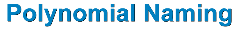 ![]() In mathematics, a polynomial is a mathematical expression consisting of variables and coefficients, that involves only the operations of addition, subtraction, multiplication, and positive-integer powers of variables. For example, 3x2 - 5x + 7 is a polynomial, The variable is x. The coefficients are 3, -5, and 7. The word polynomial comes from the Greek poly, meaning "many", and the Latin nomen, or "name". The various types of polynomials can be named two different ways: by the number of terms, and by the degree of the polynomial. Polynomial Names by Number of Terms One Term Polynomials: These polynomials have only one term, so they are called MONOMIALS Examples: 3x2, -4x, 17, ¼x3 Two Term Polynomials: These polynomials have two terms, so they are called BINOMIALS Examples: 4x - 3, 7x2 + 6, 3x5 - 5x2, x + 1 Terms are separated by + or - signs. Three Term Polynomials: These polynomials have three terms, so they are called TRINOMIALS Examples: 3x2 - 5x + 4, x3 + 9x2 - 4, x2 - x + 3 Polynomials with more than three terms don't have special names. For example, 2x3 - 5x2 + 3x - 1 has four terms. It's just called a four term polynomial. Polynomial Names by the Degree The degree of a polynomial is the largest exponent on any of the terms. For example, 3 + x4 - 5x2 has three terms. The highest exponent is 4 So this is a polynomial of degree 4. NOTE: Polynomials are usually written in descending order of powers. So the trinomial above should more properly be written as x4 - 5x2 + 3. This places the highest power first, making it easy to see the degree. But watch out; sometimes they're not in order. Different degrees also have names: Degree 0: Polynomials of degree zero are called CONSTANT polynomials. For example, 2 is a constant. There is no variable, so its value is always 2. These are degree zero because they can be written this way: 2x0 since x0 = 1, so 2x0 = 2(1) = 2. Degree 1: Polynomials of degree one are called LINEAR polynomials. For example, 2x - 3 is degree one and linear. This is because the highest exponent is 1. When the exponent on the variable is 1 or 0, the exponents can be left out: 2x - 3 is really 2x1 - 3x0. Here are some more linear polynomials: 5x, ¾x + 11, 17 - x or 5x1, ¾x1 + 11, 17 - x1 Degree 2: Polynomials of degree two are called QUADRATIC polynomials. For example, 3x2 - 1 is degree two or quadratic because the highest exponent is 2. Here are some more quadratic polynomials: 4x2 + 5x - 3, 1 - 8x2, ⅓x2 Degree 3: Polynomials of degree three are called CUBIC polynomials. For example, x3 - 2x2 - 1x + 2 is degree three or cubic as the highest exponent is 3. Here are some more cubic polynomials: 5x3 + 4x2 - 1, 5 - 7x3, ½x3 + 4x2 - 8x + 9 Similarly, polynomials of degrees 4 and 5 are called QUARTIC and QUINTIC. Correlations: Names by degree correspond to the maximum number of x-intercepts and the shape of the corresponding function: