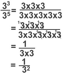 The 'Negative Exponent' rule isn't difficult to use, but it's a little unusual. Let's start with this example, that doesn't use any exponent rules, just simple powers: By writing out all the 3's and reducing the fraction, only a '1' remains on top, but two 3's are clearly left behind on the bottom. Now let's do the same question using the Quotient Rule: (subtract the exponents) We have just done the same question two different ways, and come up with different answers. Since the question was the same each time, the answers must be identical. This means that: Here you see the negative exponent rule illustrated. When there is a negative number for an exponent, the answer isn't negative at all; it's a fraction! You can think of the negative sign in an exponent as really meaning "one over", with the actual question appearing on the bottom of the subsequent fraction. Here's another one: According to the rule, it should equal: The Negative Exponent Rule says: "A negative exponent can be replaced by 'one over', and the rest of the question goes on the bottom of the fraction" Here's one more example: Zero Exponent | Negative Exponents |