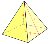 Given height H and half the base side x Using the Pythagorean Theorem: S2 = H2 + x2 Example 6: Find the surface area rounded to 2 d.p.