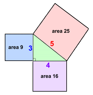 The Pythagorean Theorem is one of the oldest, most well-known and widely used mathematical relationships in history. It's been a fundamental part of math classes around the world for several thousand years. First described by the Greek mathematician Pythagoras 2500 years ago, the Pythagorean Theorem describes the relationship between the three sides of a right triangle. ![]() In any right triangle, the hypotenuse h is the longest side. The three sides are related in such a way that if you square the length of the hypotenuse, you will get the same answer as you do when you square each of the other two sides, and add the values together. ![]() The Pythagorean Theorem says that the three sides must follow this rule: 52 = 32 + 42 It works, as you can see: 25 = 9 + 16 The Pythagorean Theorem can also be expressed a different way. If you draw the triangle with squares on each side, it would look like this: ![]() The theorem tells us that 52 = 32 + 42. This is equivalent to stating that the area of the square on the hypotenuse is equal to the areas of the squares on the other two sides, added together. Or, in other words, 25 = 9 + 16 This will only work for a right triangle. In fact, one of the first uses for this theorem thousands of years ago (when there were no accurate surveying instruments) was to help farmers lay out a 90 degree angle on the ground so they could build a proper fence between their land and their neighbour's. The method involved preparing a rope with knots tied in it: This resulted in a 90 degree angle, which the farmer could use to lay out his fence line. In modern times, the theorem is used to solve for a missing side in a triangle (more about that on page 2), and is also fundamental to the theorems in trigonometry. The sides of a right triangle can be any length, of course. We've already seen that 52 = 32 + 42. There are other whole numbers that also work: Numbers which can be sides of a right triangle (ones that follow the rule h2 = a2 + b2) are called 'Pythagorean Triples'. Here are the most common ones: In addition, any multiple of these also work: For example: 3,4,5 or 6,8,10 or 9,12,15 or 12,16,20 ... etc or these: 5,12,13 or 10,24,26 or 15,36,39 or 20,48,52 ... etc or these: 7,24,25 or 14,48,50 or 21,72,75 or 28,96,100 ... etc Let's try one: In other words, any size of right triangle will work! Now let's look at how the Pythagorean Theorem can be used to solve for a missing side in a triangle. Move on to page 2 >>> |