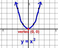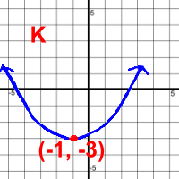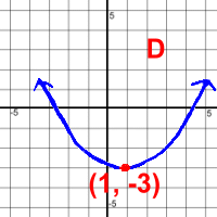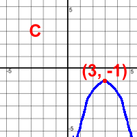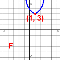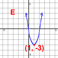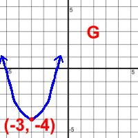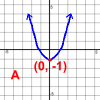 This is the simplest parabola y = +1x2Others will be upside down (-). Some will be steeper (a number bigger than 1) or less steep (a fraction between 0 and 1) Some will be shifted left or right (a number with the x that's + or -) Some will be shifted up (+ end number) or down (- end number) Match each graph below with the equation it corresponds to, by referring to the basic graph above. The shapes are y = x2, y = ½x2 or y = 4x2 Enter the matching letter below each equation. When you're done, scroll way down to check all your answers.