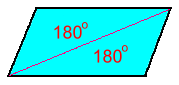 In any parallelogram, the four angles add to 360°. This is because a parallelogram is composed of two triangles. Trapezoids: