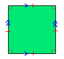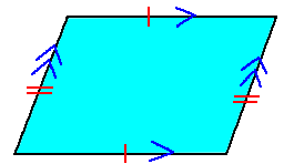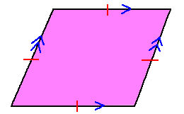 Parallelogram: A parallelogram is a quadrilateral with: - opposite sides parallel (blue arrows) - opposite sides equal (red dashes) All the remaining shapes on this page are parallelograms.