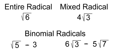 ![]() dividing radicals, you should review radical simplifying. Types of Radicals: