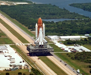 The Crawler-Transporters were vehicles built for the sole purpose of moving the completed Apollo/Saturn rocket from the Vehicle Assembly Building to the launch pad, a distance of 6.7 kilometres. They were also used for the same purpose with the Space Shuttles, and will continue to be used with future rocket systems.