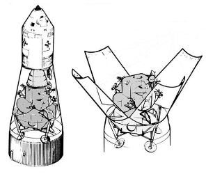 Above: Lunar Module inside 3rd stage canopy; Upper stage of Lunar Module lift-off [See a video]