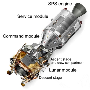 The Apollo mission consisted of a Command/Service Module and a two-part Lunar Module. The Command/Service Module and Lunar Module would separate after achieving lunar orbit insertion, with two of the astronauts in the Lunar Module. They would descend to the lunar surface using the engine in the lower descent stage of the Lunar Module. After exploring the surface, the astronauts would fire the ascent engine in the top half of the Lunar Module, which would separate, leaving the lower half on the surface while the top half ascended to orbit to rendezvous with the Command/Service Module for the journey back to Earth.