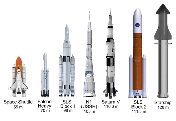 Here's a comparison of the height of the Saturn V to other large rockets: