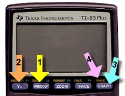 The first step is to set the size of the graph. Press the 'WINDOW' key (#1 shown above).