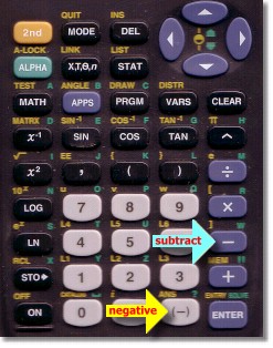 The negative key (-) at the bottom of the keyboard is for entering negative numbers.