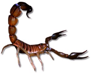 ![]() ![]() There are more than 1500 species of scorpion; all are arthropods in the class 'arachnida', and so are closely related to spiders, mites and ticks. Most have a life span of 2 - 6 years. All scorpions are venomous, although most are not dangerously so. There is even a scorpion found in Alberta. Scorpions hunt at night; their prey includes insects, spiders, and other scorpions. Larger species also prey on small lizards, snakes and mice. When a scorpion spots a victim, it will grab it with its claws, using its venomous tail stinger only if the prey is large or resists being eaten. If a human is stung by a scorpion, the usual symptoms are swelling, numbness and convulsions, as well as difficulty in breathing. Scorpion stings are rarely fatal to adults if medical attention is received. Children and older people are much more at risk of death, however. The Death Stalker Scorpion Lieurus quinquestriatus ![]() The Death Stalker scorpion is found in North Africa and the Middle East. It prefers a dry climate, and makes its home in natural burrows or under stones. The neurotoxins found in Death Stalker venom are being studied by scientists, who hope to find in them a treatment for some diseases, noteably some forms of brain cancer, and diabetes. |