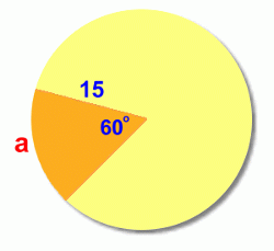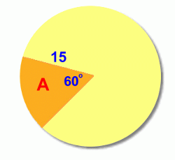 ![]() On this page we'll show you how to find the arc length a and the area A of the sector. ![]() ![]() Finding Arc Length ![]() We'll use a circle with radius 15 cm and central angle 60°. The first step is to find out what fraction of the circle is represented by the central angle 60°: ![]() The sector represents 1/6 of the circle, or 0.1666... of the circle. To find the arc length a, we now need to find the circumference (the distance around the full circle), and then find 1/6 of it (multiply it by 0.1666...) ![]() ![]() This is the length of the arc a. This method will work for any sector in any circle. You just need to find the fraction of the circle that the sector angle represents, and then find that fraction of the circumference. ![]() Here's a quicker formula to use, summarizing this in one calculation. Math 30 students will learn a new formula for finding arc length: a = r Θ, where Θ is measured in radians. Finding the Sector Area ![]() Again we'll use a circle with radius 15 cm and central angle 60°. The first step once again is to find out what fraction of the circle is represented by the central angle 60°: ![]() The sector represents 1/6 of the circle, or 0.1666... of the circle. To find the sector area A, we now need to find the area of the full circle, and then find 1/6 of it (multiply it by 0.1666...) ![]() ![]() This is the area of the sector, A. This method will work for any sector in any circle. You just need to find the fraction of the circle that the sector angle represents, and then find that fraction of the area. ![]() Here's a quicker formula to use, summarizing this in one calculation. |