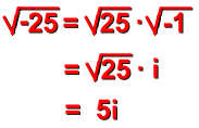 If you can imagine them, they exist. What kind of number can we imagine that is not a Real number?!? Any number which cannot possible exist could be called 'imaginary'. Imaginary numbers are actually ones like this ... ![]() Think about this number. It is certainly a number ... we just wrote it. But what kind of number could it be? What is the square root of negative twenty five? A square root is a value that will multiply by itself to give the original number. For instance: ![]() ![]() If this number exists, then its value must multiply by itself to give -25. Can - 5 be the answer? No. -5 x -5 = +25 Can +5 be the answer? No. +5 x +5 = +25 You can write the square root of a negative number, but you can't work it out. It has no value. Numbers like this are called imaginary numbers, and they always involve the square root of a negative number. It's a little like unicorns. They don't exist. But we can read stories about them, draw them, talk about them, and use them to teach little kids about how to behave. Similarly, we can write imaginary numbers, examine their properties, and use them in problems. The problem with imaginary numbers really just arises from the negative under the root sign. In fact, since every negative number can be thought of as a positive number multiplied by -1 (ie: -74 = 74 x -1), every imaginary number can be simplified like this: ![]() where i is the label given to the troublesome 'square root of -1'. Every imaginary number, then, is just some multiple of i. Here's another example: ![]() Complex numbers are ones which have a Real and an Imaginary part. A typical complex numer might be: ![]() Since it has an imaginary part, a complex number has no value either. |