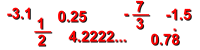 This is the set of all numbers that have fractional or decimal values, positive or negative, that do not equal a whole value. Here are some examples: