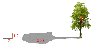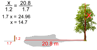 A tree casts a 20.8 m shadow.A 1.2 m tall stick placed on the ground casts a 1.7 m shadow. How tall is the tree?