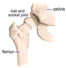 ![]() The FemurThe ball and socket joint where the femur meets the pelvis is the type of joint that gives the largest range of movement. Because the ball at the end of the femur fits deeply into the socket in the pelvis, this joint is very stable; a similar but looser-fitting joint at the shoulder has more mobility. A rim of cartilage lining the socket helps grip the femur firmly; the ligament binding the two bones is among the strongest in the human body. |
