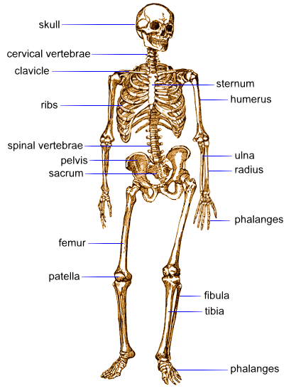 Click on a label at the right or a link below to find out more about each part of the skeleton.