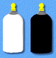 The sun gives us a lot of energy in the form of heat. At the equator, the earth receives about one kilowatt of energy on every square meter. A kilowatt is 1000 watts, or the amount of energy needed to light ten 100-watt lightbulbs. If we could make use of this energy, it would reduce pollution and our reliance on fossil fuels. You can easily see how to collect solar energy as heat by doing a simple experiment. You will need two large empty pop bottles, two balloons, and some white and black acrylic paint. Paint both bottles, one white and one black. Then attach a balloon tightly to the top of each bottle, as shown below.