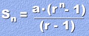 ![]() A geometric series is a geometric sequence which is being added. For example, the sequence 2, 6, 18, ... has a corresponding series 2 + 6 + 18 + ... A series can be added, to give a sum. Here's a typical question: Notice that the series is geometric, because there is a common ratio of 2. In order to find the sum of 10 terms, or S10, we will need a formula. Here it is: ![]() Let's use this to find the sum S10 for the series 4 + 8 + 16 ..., where a = 4, r = 2, and n = 10 Sn = a(rn - 1)/(r - 1) S10 = 4(210 - 1)/(2 - 1) S10 = 4(1024 - 1)/1 S10 = 4(1023) S10 = 4092 So the sum of the first 10 terms in the series 4 + 8 + 16 ... is 4092. Here's a different example. In this case we know a = 72, and n = 9. In order to find r, we'll take a term and divide by the term just before it. Take -24 and divide by 72: -24 ÷ 72 = -1/3 So the value of r is -1/3 a = 72 r = -1/3 n = 9 Sn = a(rn - 1)/(r - 1) S9 = 72((-1/3)9 - 1)/(-1/3 - 1) Using 0.333... for r, and a scientific calculator: S9 = 54.0 The sum of the series 72 - 24 + 8 - ... , which has 9 terms, is 54.0. Here's an example that's a little different. Let's list what we know: a = 1 n = 20 In order to find r, divide 1.1 by 1 ... which gives a value for r of 1.1 a = 1 r = 1.1 n = 20 Sn = a(rn - 1)/(r - 1) S20 = 1((1.1)20 - 1)/(1.1 - 1) Using a scientific calculator: S20 = 57.3 The sum of the series 1 + 1.1 + 1.21 + ... , which has 20 terms, is 57.3. Here's a real problem to illustrate a common use of the sum formula. ![]() A large truck hauling rocks for road construction has to haul its load farther with every trip. Each trip requires twice as much fuel as the previous one. If the truck uses 11 litres of fuel on the first trip, and it makes 6 trips, how much fuel does it use altogether? The first step will be to write the series of numbers that represent the problem, and state what must be worked out. a = 11 r = 2 n = 6 Sn = a(rn - 1)/(r - 1) S6 = 11((2)6 - 1)/(2 - 1) S6 = 11(64 - 1)/(1) S6 = 11(63) S6 = 693 The sum of the 6-term series 11 + 22 + 44 + ... is 693. The truck needs 693 litres of fuel. |
