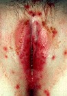 ![]() Herpes is a viral infection of the skin caused by the Herpes Simplex Virus (HSV). There are two varieties of the virus. HSV-1 causes mouth and lip rashes, or cold sores. HSV-2 causes genital herpes. Either strain of this virus can cause either type of herpes, although 75% of genital herpes is caused by HSV-2. ![]() ![]() GENITAL HERPES One in every five people have, or will have, genital herpes. Symptoms of genital herpes include fever, headache, muscle aches, and rashes, which may also be accompanied by painful blisters and ulcerations of the skin. Glands in the groin area may become tender and swollen. After a few weeks most of the symptoms will disappear. 50% of those infected will show no significant symptoms ... many people can have the disease without knowing it! Unfortunately, the virus symptoms (if there were any) disappear, but the disease itself stays in your body, recurring every few months (although not as severely) for the rest of your life. Herpes is spread by skin-to-skin contact. Most exposure happens when there is no identifiable rash, either because the symptoms have disappeared temporarily, or because there are no visible symptoms at all. Because sexual intercourse isn't necessary to spread the disease, there is no sure way to avoid it other than abstinence. High-risk behaviours (unprotected sex, or protected sex with many different people) can greatly increase the chances that you will get this disease. Babies delivered through the birth canal of an infected woman can become infected if the mother has the disease, most especially if the disease has flared up during delivery. This can cause a whole-body and brain infection in the baby, with a high death rate. For those babies that live, the result is often mental retardation and blindness. To avoid these complications, women who are experiencing a recurrence of the symptoms of herpes give birth by Cesarean (C-section) delivery. Like most viral infections, there is no cure for herpes. Some medications can lessen the symptoms of the disease, and shorten the duration of the outbreaks. Currently (2022) there is a new vaccine which is under development that shows promise for preventing the disease in women. GONORRHEA | GENITAL WARTS | LICE & CRABS | SCABIES | HEPATITIS | HIV/AIDS |