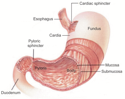 Your stomach has five distinct sections: