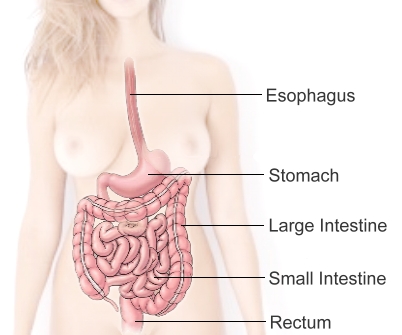 The parts of the gastrointestinal tract: