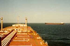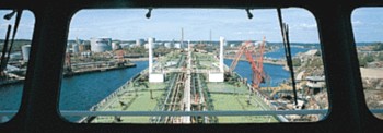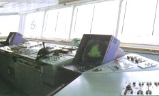 Among tanker ships, the very largest are called supertankers. The largest of these are the Very Large Crude Carrier (VLCC), which can carry 200,000 tons or more of oil, and the Ultra Large Crude Carrier (ULCC), which can manage over 300,000 tons. These ships can weigh 200,000 to 400,000 tons all by themselves. The top speed of a supertanker when carrying a full load can be as much as 30 km/h. VLCCs are so big that their load of crude oil, held in several cavernous tanks each the size of a cathedral, could easily meet the energy needs of a small city for a year. Three supertankers can carry all of the oil used by Japan in a day. The world’s biggest crude oil tanker can accommodate enough oil for one-day consumption of Britain and France combined They're also half a football field wide. Crew members use bicycles to get around on them. Unfortunately, you may never get to see such a ship, even if you live on a seacoast, because supertankers are too big to enter most ports. These gigantic ships have been built for a reason. Their small crews and giant payloads maximize shipping company profits. Although the ship will probably also cost eight times as much to build, with high oil prices, a supertanker carrying crude oil from Saudi Arabia to the east coast of North America can pay for itself after about four successful voyages. Using waterways is economically viable compared to transporting oil via pipelines, which would be much more costly and time-consuming. Also, transporting oil by the biggest tankers adds just 2 to 4 cents to the cost of a gallon, making it quite profitable. Oil tankers have an operational life expectancy of 25 to 30 years. Only a small crew is needed, and the ships can be driven by a single person. A crash stop maneuver (from 'full ahead' to 'full reverse') can stop a fully loaded supertanker within approximately three kilometres, which takes about 14 minutes. The turning diameter is almost two kilometres. (These values vary according to ship size and weight, of course). Only the most experienced ship captains are permitted to train for supertankers. View from the bridge.