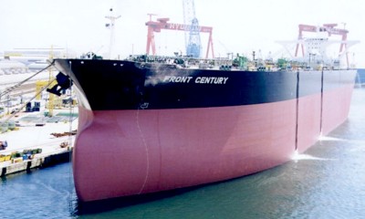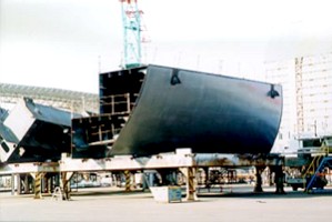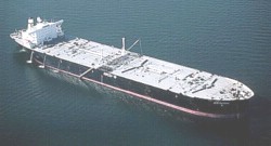 The 'Coriolis Effect' is noticeable on the surface of the earth when an object moves north or south. It results in an apparent 'force' which causes the motion of the object to have an east/west component. Actually, this isn't a force at all ... Here's an explanation. ![]() Imagine a very powerful cannon firing a shell northward from the equator. While at that position on the surface of the earth, the cannon shell shares the earth's eastward rotational speed, 1600 km/h, which is highest at the equator. As the cannon shell moves northward, say as far as Greenland, it still has this high eastward speed, but the earth's surface rotates more slowly at this latitude ... perhaps as little as 900 km/h. In the time it took the cannon shell to move north, Greenland won't have moved as far east, because the rotational speed is slower. The end result is that an object moving northward will also have moved towards the east, according to the land below. But only because the land below hasn't kept up. Theoretically, supertankers are long enough such that this effect could be accounted for during navigation. In other words, if a supertanker is moving northward, the back end is rotating with the earth faster than the front end, and will affect the direction of travel measureably, unless corrected for. However, Roy Philpott, a recent visitor to this page, who has worked at sea for 20 years "on some of the biggest ships afloat", tells us that the coriolis force is not taken into account when navigating. He suggests that sea currents, wind and general steering inaccuracies are much greater, and for this reason the coriolis effect is unnoticeable. We thank him for his contribution to the accuracy of our page. Supertankers are constructed in various stages. Components of the ship are made in advance, and assembled in stages. Then the components are put together using huge cranes. Finally, the completed hull is floated, and work begins on the inside fittings. Euronav Oceania [below] is the biggest oil tanker currently operational. It is a ULCC; the cost of its construction was 90 million dollars. Fully loaded, it won't pass through either the Suez or Panama canals. It is 380 m long and 68 m wide, and travels at an average speed of 16.8 knots when fully loaded. It can carry more than 3 million barrels of oil. ![]() |