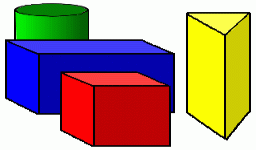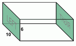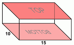 ![]() ![]() Lets look at some examples and we'll show you several ways to find the surface area. Rectangular Prisms ![]() In order to calculate its total surface area, you first have to realize that this figure has six faces. At the moment you can only see three of them. Let's redraw the figure so that it is transparent. This will allow us to see all six of the faces. ![]() Each of these two faces is a rectangle. You already know how to calculate the area of a rectangle: the formula for a rectangle's area is given by A = L · W Front area = L · W = 15 · 6 = 90 cm2 Back area = L · W = 15 · 6 = 90 cm2 ![]() Here are the left and the right. These two faces are identical. Each of these two faces is a rectangle. Left area = L · W = 10 · 6 = 60 cm2 Right area = L · W = 10 · 6 = 60 cm2 ![]() Here are the top and bottom. These two faces are identical. Each of these two faces is a rectangle. Top area = L · W = 15 · 10 = 150 cm2 Bottom area = L · W = 15 · 10 = 150 cm2 Now the total surface area of the figure can be found by adding the areas of all six faces: Surface Area = 90 + 90 + 60 + 60 + 150 + 150 = 600 cm2 You may have noticed that for the three area calculations above (each one of which is doubled up), the numbers used for the length and width were just the three measurements of the prism, taken in pairs. If you can see how this works, and would like a quicker way to calculate the surface area of a rectangular prism, here's a formula that always works, and will give you the answer in one step: Surface Area of a Rectangular Prism = 2·L·W + 2·L·H + 2·W·H S. A. = 2·15·10 + 2·15·6 + 2·10· 6 = 600 cm2 ... where L, W, and H are the length, width and height of the prism. Make sure your teacher will allow you to use this formula for your work; in grade 7/8 classes you may be asked to calculate surface area step-by-step instead, like we did at the top of the page. Now let's do another example with a different kind of prism ... |