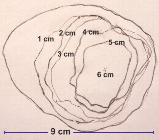 We're going to make a topographic map for a plasticene 'mountain' 9 cm across at the base and 6 cm tall.