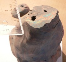 Our map will start with the top elevation. We're going to show elevation changes of 1 cm on the map, so measure 1 cm down from the top of the mountain and make a small mark.
