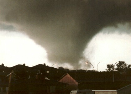 In 1987, an F3-F4 tornado touched down in Edmonton, Alberta, spending over an hour on the ground and causing 27 deaths and $250 million in damages as it worked its way for 40 kilometres across the edge of the city at 35 km/h.