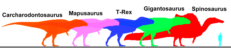 There is some fossil evidence to support the idea that T. rex may have had feathers like many other smaller dinosaurs, but that they were likely confined to small patches on the head and tail. T. rex was certainly the biggest two-legged predator in the late Cretaceous ecosystem, and it was one of the largest predators ever to live on land. Other species, such as Carcharodontosaurus, Giganotosaurus and Spinosaurus, were similar in size but lived earlier in the Cretaceous Period. They belonged to different families of predatory dinosaurs than T. rex. ![]() |