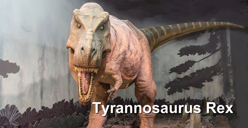 ![]() Tyrannosaurus Rex, or T. rex, was a large theropod, the largest of the tyrannosaurs, that lived during the Upper Cretaceous period, 68 to 66 million years ago. 'Tyrannosaurus' is Greek for 'tyrant lizard,' and 'rex' means 'king' in Latin. So, Tyrannosaurus rex was 'King of the Tyrant Lizards.' T. rex could grow to lengths of over 12.5 m and weigh 9 metric tonnes. It was among the largest known land predators, and is estimated to have exerted the strongest bite force among all terrestrial animals. This allowed it to crush bones while biting, and completely consume the carcasses of large dinosaurs As the largest carnivore in its environment, Tyrannosaurus rex was an apex predator, preying upon hadrosaurs and young armoured herbivores like ceratopsians and ankylosaurs, and perhaps sauropods ('long-necks'). It lived throughout what is now western North America T. rex had senses similar to those of its close relatives, birds and crocodiles. Because of its forward-facing eyes, it may have had better depth perception than most other predatory dinosaurs. Most paleontologists today accept that Tyrannosaurus was both an active predator and a scavenger. T. rex hatchlings were gangly, and turkey-sized.