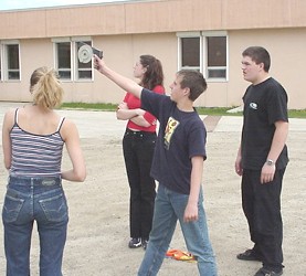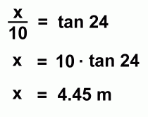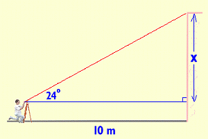 Sr, High Science How close was our answer? Well, the precision of our measurements could have affected the result. Let's have a look at how precise our values were, and find out what sort of effect this might have had on the calculated result. The clinometer's scale is labelled in single degrees. Ideally, we should be able to measure an angle accurately to within half a degree. However, the sights on the clinometer are not very good, and there is no telescope to pinpoint the aiming spot 'exactly'. As a result, our angle measurement could have been off by as much as perhaps two degrees. The measuring tape was more precise, but we didn't make much of an effort to pull it tight. We could have been off on our distance measurement by perhaps as much as 20 cm, or 0.2 m Lets see what effect this error could have on our answer. If our measurements were both too big by 0.2m in distance, and 2 degrees of angle, the values might actually have been 10.2m and 26°. This would make x = 10.2 · tan26 = 4.97m, and the height of the gym 6.17m (We will assume, for simplicity, that the error in measuring the height 1.20m of the instrument was negligible) If our measurements were both too small by 0.2m in distance, and 2 degrees of angle, the values might actually have been 9.8m and 22°. This would make x = 9.8 · tan22 = 3.96m, and the height of the gym 5.16m So we can say that, while we originally calculated the height of the gym to be 5.65 m, its probable height, allowing for errors in measurement, is more likely somewhere between 5.16m and 6.17m. |