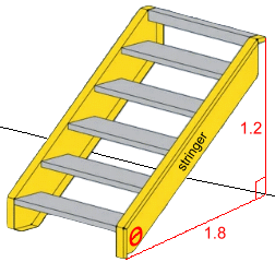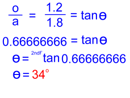 Page Three Problem 5: 'A carpenter is planning a set of stairs that need to reach up to a doorway 1.2 metres off the ground. The distance from the building along the ground will have to be 1.8 metres. What will the angle between a stringer and the ground be, to the nearest whole degree?'