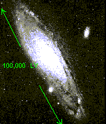 ![]() The sun is one of several hundred billion stars in our galaxy. The galaxy is a collection of stars that stretches through space a distance of 100,000 light-years. ![]() A light-year is the distance that light travels in one year, or about 10 trillion kilometres. Thus the length of the galaxy is about 1,000,000,000,000,000,000 kilometers. Only the brightest stars can be seen in this picture; billions of others are too faint to be seen...as is our sun, which is represented here by the flashing yellow dot, about two-thirds of the way out from the center. The average distance between stars throughout most of the galaxy is many light-years...or tens of trillions of kilometres. If you were travelling at 20 kilometres a second, which is about as fast as any spacecraft we've ever built, it would take almost 70,000 years to reach the star nearest to the sun, and about 1.5 billion years to travel the length of the galaxy. Here's an analogy that might help you visualize stellar distances. Suppose the sun were an orange. On this scale, Earth would be a grain of sand 8 metres away. Pluto, the most distant planet in our solar system, would be a smaller grain of sand 300 metres from the orange. The nearest star would be another orange, 2000 kilometres away! Our galaxy? Picture a vast collection of oranges...250 billion of them... stretching out for 60 million kilometres! Our galaxy is quite ordinary, and is one of many hundreds of billions of galaxies in the visible universe. |