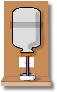 Here's what it looks like: ![]() Keep the bottle cap full of mineral oil. The container shown here is the inside of a thermos bottle, but it could be any container that you can make air-tight, as long as it has rigid walls. This is so that the air pressure inside the container won't be directly affected by the outside air pressure; it will remain constant while the outside pressure changes. Seal the opening where the tube enters the container with plasticine, to make an air-tight seal. Attach a piece of paper behind the tube, on which to record the level of the mineral oil. The container can be kept indoors or outside, since air pressure doesn't vary much inside or out. Just be sure to keep it in a shady location where the temperature doesn't change too dramatically. Hot sun shining on the container could cause the air inside to heat and expand, increasing its pressure, and distorting your readings. As the air pressure increases, it pushes down on the mineral oil in the bottle cap; this pressure forces the mineral water up the tube, and you'll be able to record a higher reading. Similarly, when bad weather is approaching, the air pressure will drop; when it does, the level of mineral oil will fall. |