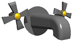 A wheel & axle can also be used in reverse. You apply force to the axle, to make the wheel turn. This doesn't seem to make much sense ... you'll have to apply a much larger force, to produce a relatively small resultant force. Why bother? There are two reasons why you would want to do this. First, like all simple machines, there is a trade-off. In a normal wheel & axle like those above, when the force is multiplied by, say, a factor of 10, the axle turns through a circular distance of only a tenth of that through which you turned the wheel. This isn't a problem turning a screw with a screwdriver, because the circumference of the hole is small. However, let's reverse the situation. Suppose you apply your force to the axle. like on a vehicle. If you turn the axle, the wheel will turn through a distance 10 times as much as you turned the axle. As the wheel is attached to a vehicle, each turn of the wheel moves you farther along the ground. With a really big wheel, one tiny turn of the axle moves you down the road a distance equal to the much larger circumference of the wheel. As with other devices, you will have to provide a large force to multiply the distance. This relates to the second reason why we would want to apply our force to the axle, even though we don't get much resultant force from the wheel. If we have a large source of power to apply to the axle, we don't care how much force is needed! This is the principle behind the reverse wheel & axle. You apply whatever force you need to the axle, from some sort of motor, and the resultant force given off by the wheel, although much smaller, will cause the wheel to turn through a very large distance. ![]() ![]() ![]() |