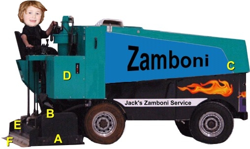 Despite the popularity of ice skating and hockey in Canada, the Zamboni ice-resurfacing machine that we are all familiar with was actually invented in the United States. In 1940 an open-air ice rink called 'IceLand' opened in southern California in the U.S. At the time it was one of the largest skating rinks in the United States, with over 1800 square metres of ice surface. It was soon covered with a dome to help preserve the quality of the ice. Maintaining a good ice surface in those days meant pulling a scraper behind a tractor, and then having three to four people shovel away the shavings. This was followed by a good hosing with water, which was then squeegeed off. Allowing the wet surface to refreeze then took about an hour. What was needed was a way to resurface the ice quickly. Frank Zamboni was an American living in California who knew a lot about water pumps and refrigeration units, and who had built IceLand across the street from his refrigeration plant. He decided to design a vehicle that would do the job. His first self-propelled prototype ice-conditioning vehicle was patented in 1949. In 1950 he formed a company to manufacture them, and the first one was sold in Chicago that year. The original machines were built on a 4WD Jeep chassis. Over the next four years, Frank Zamboni's company produced 15 more of the vehicles, each one an improvement over the last. The original patent for the 'Zamboni Ice Resurfacer Model A' was granted in 1953. Soon his machines were appearing in ice arenas around the U.S. The first use of a Zamboni machine at the Olympics occurred in 1960 at Squaw Valley, California. The main Zamboni plant is still in Paramount, California, and there's a second plant in Brantford, Ontario. The company also has a branch office in Zurich, Switzerland. Frank J. Zamboni & Co. is still a family-run business; the plants employ 50 to 60 people and the machines are built year-round. The National Hockey League started purchasing Zamboni Ice Resurfacers in the early 1950s. A single Zamboni machine will usually stay in service for about ten to twenty years, although there are many of the early models that are still clearing rinks around North America. Machine number 8000 was built and sold in 2005. Zambonis are now electrically powered, and have a top speed of about 9 miles an hour. Here are some diagrams so you can see how they work: ![]() ![]() |