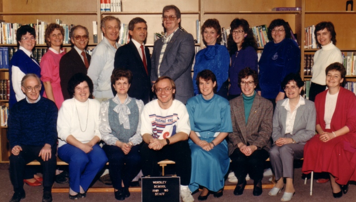 Back: Vi Anderson, Carol Wookey, Jerome Cherry, John Powell, Roger Humbke (principal), Bill Willis, Marilyn Demetroff, Brenda Doerksen, Marie Morgan, Eleanor Gordon