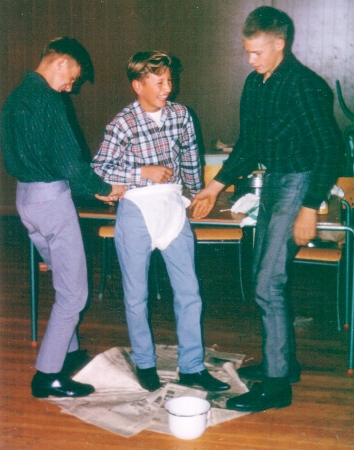 Frosh Activities November 1966 Johnson boys on left and right Glenn Basnett in centre